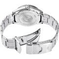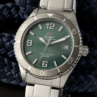 Questo orologio Orient ha una cassa in Inox con un diametro di 42.8 mm ed è dotato di un cinturino in Inox. All'interno della cassa si trova un movimento di Seiko e l'orologio è dotato di un cristallo di Zaffiro.