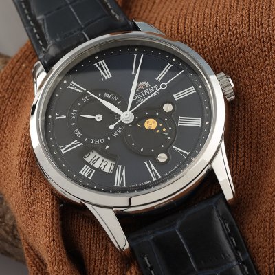 Questo orologio Orient ha una cassa in Inox con un diametro di 42 mm ed è dotato di un cinturino in Pelle. All'interno della cassa si trova un movimento di Epson e l'orologio è dotato di un cristallo di Zaffiro.