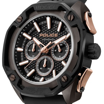 Questo orologio Police ha una cassa in Inox con un diametro di 46 mm ed è dotato di un cinturino in gomma. All'interno della cassa si trova un movimento di Seiko Instruments Inc. e l'orologio è dotato di un cristallo di Minerale.