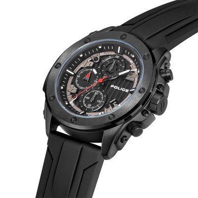 Questo orologio Police ha una cassa in Lega metallica con un diametro di 50 mm ed è dotato di un cinturino in gomma. All'interno della cassa si trova un movimento di Sunon e l'orologio è dotato di un cristallo di Minerale.