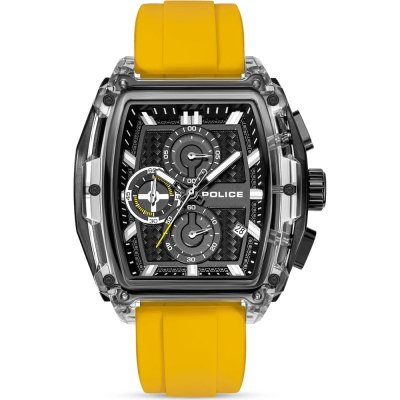 Questo orologio Police ha una cassa in Resina con un diametro di 46 mm ed è dotato di un cinturino in gomma. All'interno della cassa si trova un movimento di Seiko Instruments Inc. e l'orologio è dotato di un cristallo di Minerale.