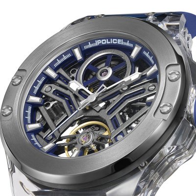 Questo orologio Police ha una cassa in Resina con un diametro di 44 mm ed è dotato di un cinturino in gomma. All'interno della cassa si trova un movimento di CN e l'orologio è dotato di un cristallo di Minerale.