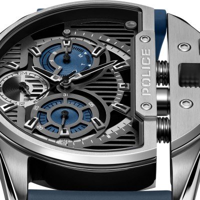 Questo orologio Police ha una cassa in Inox con un diametro di 48 mm ed è dotato di un cinturino in gomma. All'interno della cassa si trova un movimento di Seiko Instruments Inc. e l'orologio è dotato di un cristallo di Minerale.