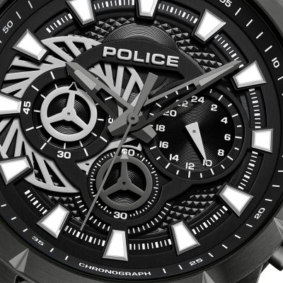 Questo orologio Police ha una cassa in Inox con un diametro di 45 mm ed è dotato di un cinturino in gomma. All'interno della cassa si trova un movimento di Seiko Instruments Inc. e l'orologio è dotato di un cristallo di Minerale.