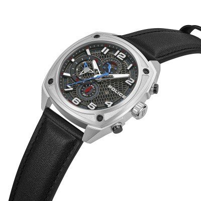Questo orologio Police ha una cassa in Inox con un diametro di 45 mm ed è dotato di un cinturino in Pelle. All'interno della cassa si trova un movimento di Seiko Instruments Inc. e l'orologio è dotato di un cristallo di Minerale.