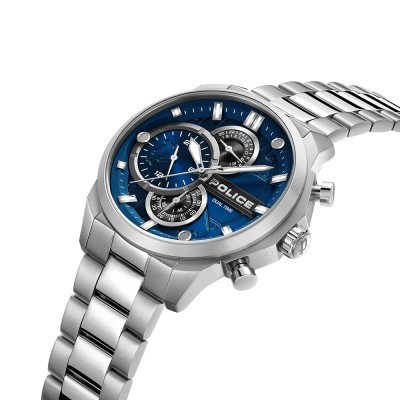 Questo orologio Police ha una cassa in Inox con un diametro di 46 mm ed è dotato di un cinturino in Inox. All'interno della cassa si trova un movimento di Seiko e l'orologio è dotato di un cristallo di Minerale.