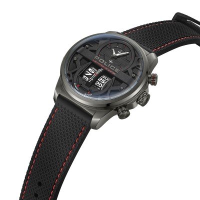 Questo orologio Police ha una cassa in Inox con un diametro di 44 mm ed è dotato di un cinturino in gomma. All'interno della cassa si trova un movimento di Bao Jie e l'orologio è dotato di un cristallo di Minerale.