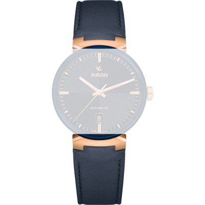 Questo cinturino Rado è fatto in pelle ed è collegato all'orologio per mezzo di perno e tubo. Il cinturino ha una larghezza di 21 mm e si chiude a mezzo di fibbia. Il cinturino non ha montatura dritta, il che significa che questo cinturino è adatto solo per gli orologi elencati di seguito.