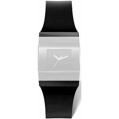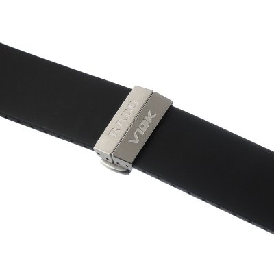 Questo cinturino Rado è fatto in gomma ed è collegato all'orologio per mezzo di viti. Il cinturino ha una larghezza di 27 mm e si chiude a mezzo di fibbia a farfalla. Il cinturino non ha montatura dritta, il che significa che questo cinturino è adatto solo per gli orologi elencati di seguito.
