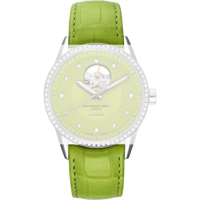 Questo cinturino Raymond Weil è fatto in pelle ed è collegato all'orologio per mezzo di perni a molla. Il cinturino ha una larghezza di 20 mm. Il cinturino non ha montatura dritta, il che significa che questo cinturino è adatto solo per gli orologi elencati di seguito.