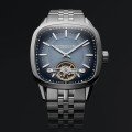 Come ci si aspetta da Raymond Weil, l'attenzione ai dettagli di questo orologio Freelancer è ammirevole. L'elegante forma a cuscino della cassa è ripresa dagli indici e dalle lancette. Il quadrante sfumato presenta diversi livelli e texture e una finestra sul movimento. Il calibro interno RW1212 ha una riserva di carica di 41 ore e una massa oscillante a forma di W, con il ponte che costituisce un collegamento visivo con il quadrante dell'orologio. Le varie sfaccettature, linee e curve dell'orologio giocano con la luce, accentuandone la bellezza.