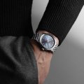 L'ultimo nato della gamma Raymond Weil Freelancer unisce l'eleganza classica alla raffinatezza moderna. L'orologio è dotato di un movimento meccanico a carica automatica di manifattura con riserva di carica di 41 ore (RW4420). Le anse della cassa da 40 mm sono curvate in modo da rendere l'orologio confortevole al polso, così come il bracciale in stile giubileo con chiusura déployante a doppia pressione. Le linee più strette della lunetta e la finitura lucida ad alta brillantezza, così come il quadrante a raggi di sole, esaltano la profondità e i giochi di luce dinamici. Gli indici applicati e le raffinate lancette con Super-LumiNova bianca assicurano una leggibilità ottimale, mentre una sottile minuteria posizionata sulla lunetta interna completa il design armonioso. La corona avvitata reca in rilievo il monogramma RW e il movimento automatico è visibile attraverso il fondello in vetro zaffiro, che mostra una massa oscillante a forma di W, segno distintivo del marchio Raymond Weil.