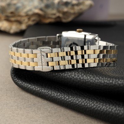 Gli orologi con quadrante quadrato e rettangolare, che erano uno stile popolare nell'era Art Déco, stanno tornando. Questo nuovo modello Toccata da donna unisce il sofisticato fascino Art Déco a un quadrante rettangolare allungato e una cassa sottile da 6,25 mm. Questo è il design della cassa più superficiale di Raymond Weil fino ad oggi, che conferisce un profilo molto elegante all'orologio. Il design a strati conferisce a questo orologio un'illusione di profondità senza spessore. L'orologio è completato dal monogramma RW sulla corona. Il Toccata rettangolare è disponibile in diverse combinazioni di numeri romani neri su un quadrante bianco nitido o indici alternati in oro e diamanti su un quadrante in madreperla.