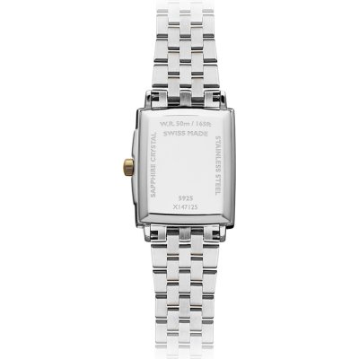 Questo orologio Raymond Weil ha una cassa in Inox con un diametro di 22.6 mm ed è dotato di un cinturino in Inox. All'interno della cassa si trova un movimento di ETA e l'orologio è dotato di un cristallo di Zaffiro.
