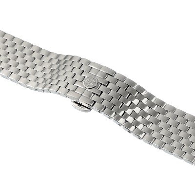 Questo cinturino Raymond Weil è fatto in acciaio inox ed è collegato all'orologio per mezzo di perni a molla. Il cinturino ha una larghezza di 21 mm e si chiude a mezzo di chiusura a farfalla con bottoni. Il cinturino non ha montatura dritta, il che significa che questo cinturino è adatto solo per gli orologi elencati di seguito.
