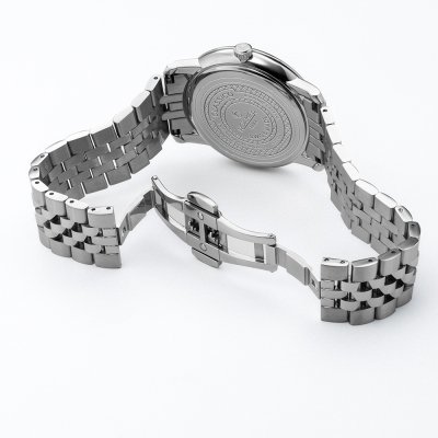 Questo orologio Roamer ha una cassa in Inox con un diametro di 40 mm ed è dotato di un cinturino in Inox. All'interno della cassa si trova un movimento di Ronda e l'orologio è dotato di un cristallo di Zaffiro.