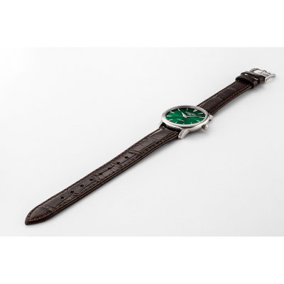 Questo orologio Roamer ha una cassa in Inox con un diametro di 30 mm ed è dotato di un cinturino in Pelle. All'interno della cassa si trova un movimento di Ronda e l'orologio è dotato di un cristallo di Zaffiro.