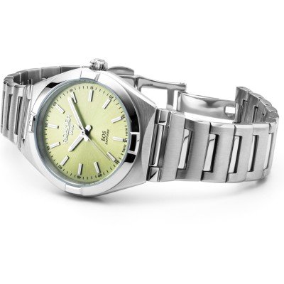 Questo orologio Roamer ha una cassa in Inox con un diametro di 34 mm ed è dotato di un cinturino in Inox. All'interno della cassa si trova un movimento di Ronda e l'orologio è dotato di un cristallo di Zaffiro.