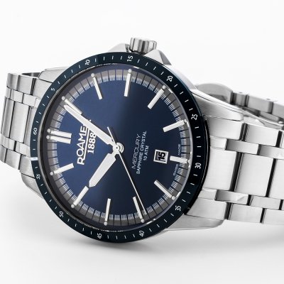Questo orologio Roamer ha una cassa in Inox con un diametro di 42 mm ed è dotato di un cinturino in Inox. All'interno della cassa si trova un movimento di Ronda e l'orologio è dotato di un cristallo di Zaffiro.