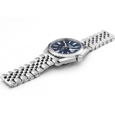 Questo orologio Roamer ha una cassa in Inox con un diametro di 41.5 mm ed è dotato di un cinturino in Inox. All'interno della cassa si trova un movimento di Soprod e l'orologio è dotato di un cristallo di Zaffiro.