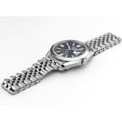 Questo orologio Roamer ha una cassa in Inox con un diametro di 41.5 mm ed è dotato di un cinturino in Inox. All'interno della cassa si trova un movimento di Soprod e l'orologio è dotato di un cristallo di Zaffiro.