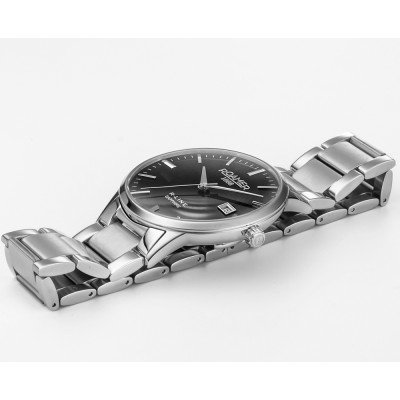 Questo orologio Roamer ha una cassa in Inox con un diametro di 43 mm ed è dotato di un cinturino in Inox. All'interno della cassa si trova un movimento di Ronda e l'orologio è dotato di un cristallo di Zaffiro.