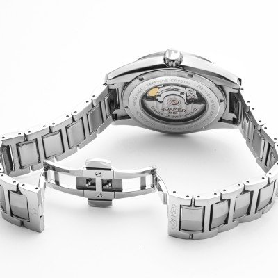 Questo orologio Roamer ha una cassa in Inox con un diametro di 42 mm ed è dotato di un cinturino in Inox. All'interno della cassa si trova un movimento di Soprod e l'orologio è dotato di un cristallo di Zaffiro.