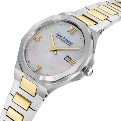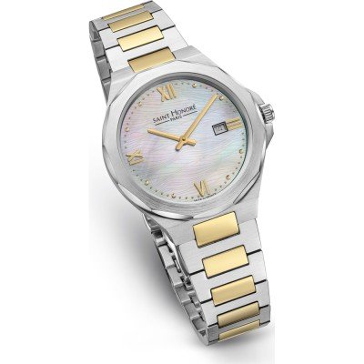 Questo orologio Saint Honoré ha una cassa in Inox con un diametro di 33 mm ed è dotato di un cinturino in Inox. All'interno della cassa si trova un movimento di Ronda e l'orologio è dotato di un cristallo di Minerale.