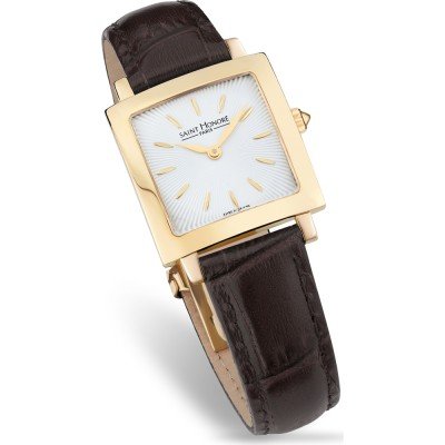 Questo orologio Saint Honoré ha una cassa in Inox con un diametro di 26 mm ed è dotato di un cinturino in Pelle. All'interno della cassa si trova un movimento di Ronda e l'orologio è dotato di un cristallo di Minerale.