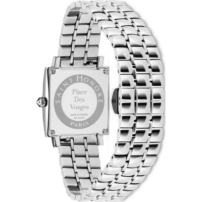 Questo orologio Saint Honoré ha una cassa in Inox con un diametro di 26 mm ed è dotato di un cinturino in Inox. All'interno della cassa si trova un movimento di Ronda e l'orologio è dotato di un cristallo di Minerale.