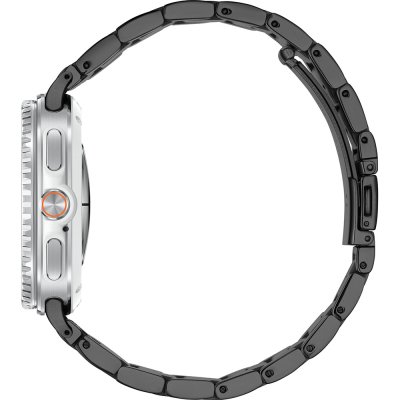 Questo orologio Samsung ha una cassa in Alluminio con un diametro di 46 mm ed è dotato di un cinturino in Cuoio su silicone. All'interno della cassa si trova un movimento di Samsung e l'orologio è dotato di un cristallo di Zaffiro.