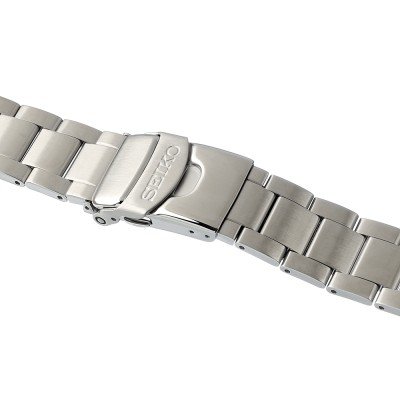 Questo cinturino Seiko è fatto in acciaio inox ed è collegato all'orologio per mezzo di perni a molla. Il cinturino ha una larghezza di 22 mm e si chiude a mezzo di chiusura deployante con bottoni e sicurezza. Il cinturino non ha montatura dritta, il che significa che questo cinturino è adatto solo per gli orologi elencati di seguito.