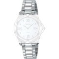 Questo cinturino Seiko è fatto in acciaio inox ed è collegato all'orologio per mezzo di perni a molla. Il cinturino ha una larghezza di 14 mm e si chiude a mezzo di chiusura deployante con bottoni. Il cinturino non ha montatura dritta, il che significa che questo cinturino è adatto solo per gli orologi elencati di seguito.
