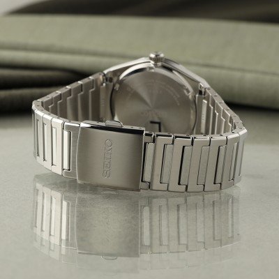 Questo orologio Seiko ha una cassa in Inox con un diametro di 38.9 mm ed è dotato di un cinturino in Inox. All'interno della cassa si trova un movimento di Seiko e l'orologio è dotato di un cristallo di Zaffiro.