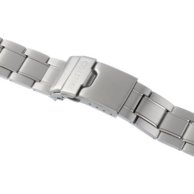 Questo cinturino Seiko è fatto in acciaio inox ed è collegato all'orologio per mezzo di perni in acciaio. Il cinturino ha una larghezza di 22 mm e si chiude a mezzo di chiusura deployante con bottoni e sicurezza. Il cinturino non ha montatura dritta, il che significa che questo cinturino è adatto solo per gli orologi elencati di seguito.