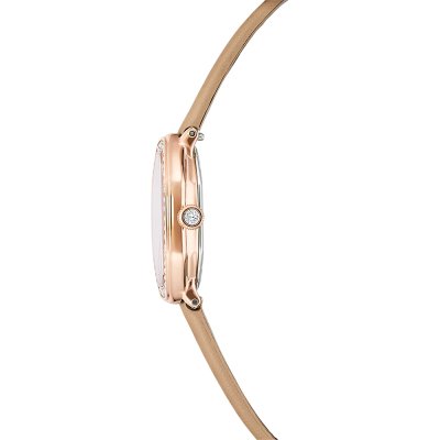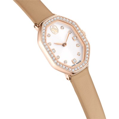 Questo orologio Swarovski ha una cassa in Inox con un diametro di 18 mm ed è dotato di un cinturino in Pelle. All'interno della cassa si trova un movimento di Ronda e l'orologio è dotato di un cristallo di Minerale.