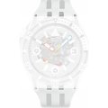 Questo orologio Swatch ha una cassa in Plastica di origine biologica con un diametro di 44 mm ed è dotato di un cinturino in gomma. All'interno della cassa si trova un movimento di ETA e l'orologio è dotato di un cristallo di Acrilico.
