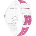 Questo orologio Swatch ha una cassa in Plastica / Resina con un diametro di 34 mm ed è dotato di un cinturino in gomma. All'interno della cassa si trova un movimento di ETA e l'orologio è dotato di un cristallo di Acrilico.