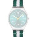 Questo orologio Swatch ha una cassa in Inox con un diametro di 42 mm ed è dotato di un cinturino in Tessuto. All'interno della cassa si trova un movimento di ETA e l'orologio è dotato di un cristallo di Acrilico.