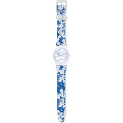 Questo cinturino Swatch è fatto in silicone ed è collegato all'orologio per mezzo di perni in acciaio. Il cinturino ha una larghezza di 17 mm e si chiude a mezzo di fibbia. Il cinturino non ha montatura dritta, il che significa che questo cinturino è adatto solo per gli orologi elencati di seguito.