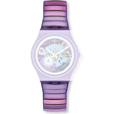 Questo cinturino Swatch è fatto in acciaio inox ed è collegato all'orologio per mezzo di perni in acciaio. Il cinturino ha una larghezza di 17 mm. Il cinturino non ha montatura dritta, il che significa che questo cinturino è adatto solo per gli orologi elencati di seguito.