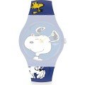 Questo cinturino Swatch è fatto in silicone ed è collegato all'orologio per mezzo di perni in acciaio. Il cinturino ha una larghezza di 19.7 mm e si chiude a mezzo di fibbia. Il cinturino non ha montatura dritta, il che significa che questo cinturino è adatto solo per gli orologi elencati di seguito.
