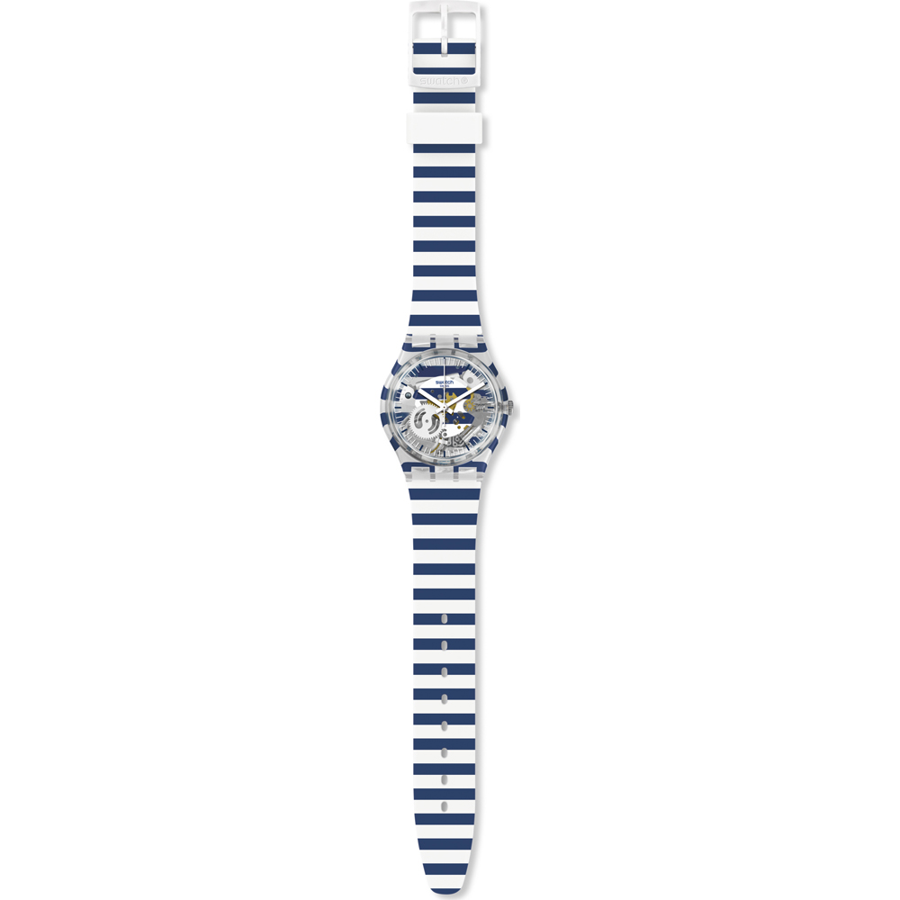 Questo orologio Swatch ha una cassa in plastica con un diametro di 34 mm ed è dotato di un cinturino in Gomma. All'interno ha un movimento quarzo per orologi di qualità ed è finito con un vetro di tipo plexiglass.