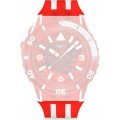 Questo cinturino Swatch è fatto in silicone ed è collegato all'orologio per mezzo di perni in acciaio. Il cinturino ha una larghezza di 26 mm e si chiude a mezzo di fibbia. Il cinturino non ha montatura dritta, il che significa che questo cinturino è adatto solo per gli orologi elencati di seguito.