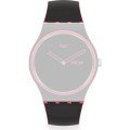 Questo cinturino Swatch è fatto in silicone ed è collegato all'orologio per mezzo di perni in acciaio. Il cinturino ha una larghezza di 19.7 mm e si chiude a mezzo di fibbia. Il cinturino non ha montatura dritta, il che significa che questo cinturino è adatto solo per gli orologi elencati di seguito.