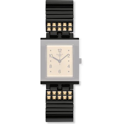 Questo cinturino Swatch è fatto in acciaio inox ed è collegato all'orologio per mezzo di perni in acciaio. Il cinturino ha una larghezza di 18 mm. Il cinturino non ha montatura dritta, il che significa che questo cinturino è adatto solo per gli orologi elencati di seguito.