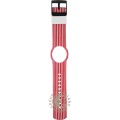 Questo cinturino Swatch è fatto in silicone ed è collegato all'orologio per mezzo di nessuno. Il cinturino ha una larghezza di 28 mm e si chiude a mezzo di fibbia. Il cinturino non ha montatura dritta, il che significa che questo cinturino è adatto solo per gli orologi elencati di seguito.
