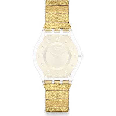 Questo cinturino Swatch è fatto in acciaio inox ed è collegato all'orologio per mezzo di perni in acciaio. Il cinturino ha una larghezza di 16.5 mm e si chiude a mezzo di chiusura a farfalla invisibile. Il cinturino non ha montatura dritta, il che significa che questo cinturino è adatto solo per gli orologi elencati di seguito.