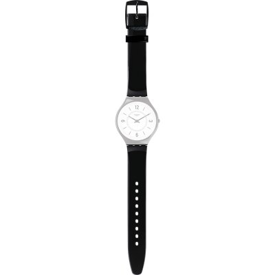 Questo cinturino Swatch è fatto in silicone ed è collegato all'orologio per mezzo di perni in acciaio. Il cinturino ha una larghezza di 14.6 mm e si chiude a mezzo di fibbia. Il cinturino non ha montatura dritta, il che significa che questo cinturino è adatto solo per gli orologi elencati di seguito.