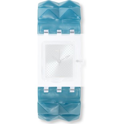Questo cinturino Swatch è fatto in resina ed è collegato all'orologio per mezzo di perni in acciaio. Il cinturino ha una larghezza di 18 mm. Il cinturino non ha montatura dritta, il che significa che questo cinturino è adatto solo per gli orologi elencati di seguito.